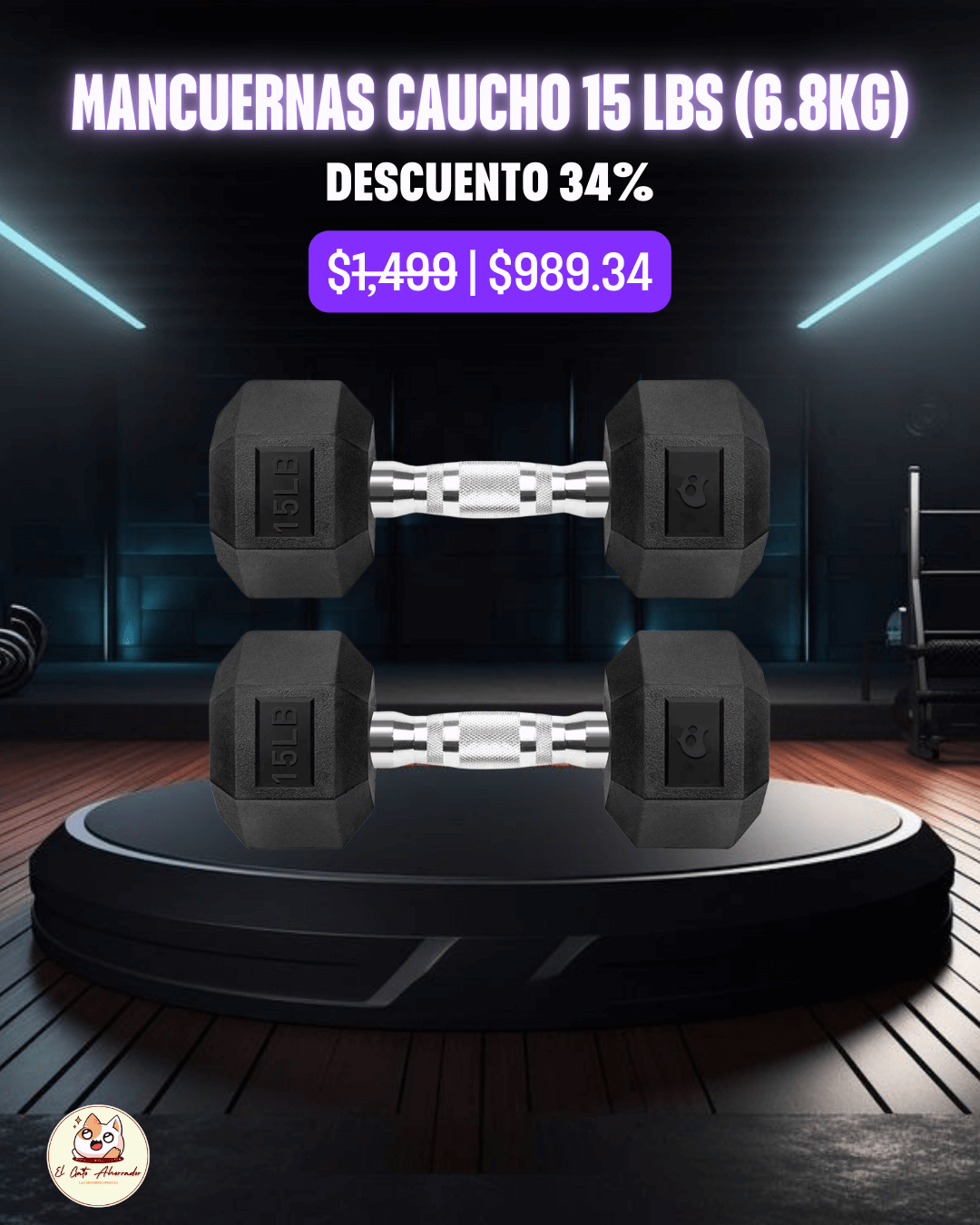 Además, las Mancuernas son compactas, lo que las hace fáciles de guardar y perfectas para gimnasios en casa. Ahorra tiempo y espacio sin sacrificar tus objetivos de entrenamiento. Con nuestras Mancuernas de 6,8 kg, conseguir una figura más fuerte y en forma nunca ha sido tan fácil. ¡Empieza tu camino hacia una mejor salud con estas herramientas esenciales de fitness!